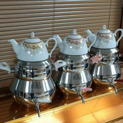 کتری قوری شیر دار رو گازی هوکوپلاس طرح سنگ با قوری طلاییناموجود
