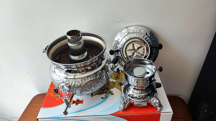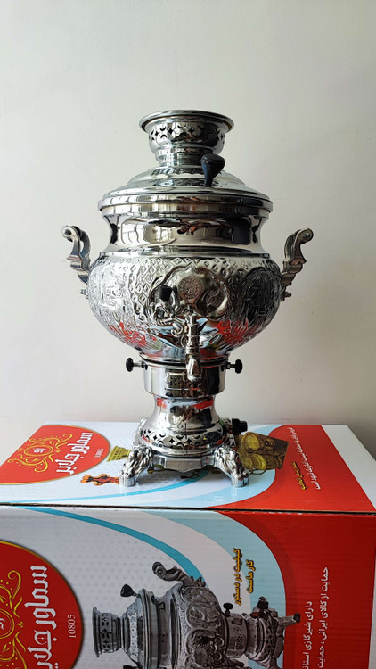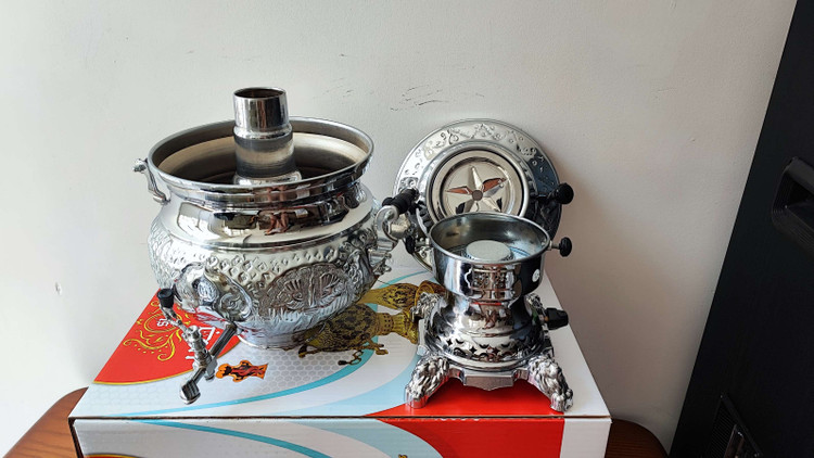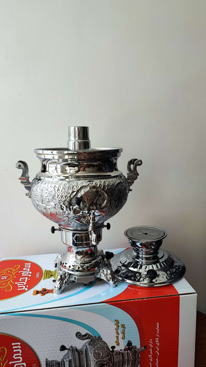 سماور گازی ۱۲ لیتری قلم کاری و ساده مدل عدسی تنوره دار