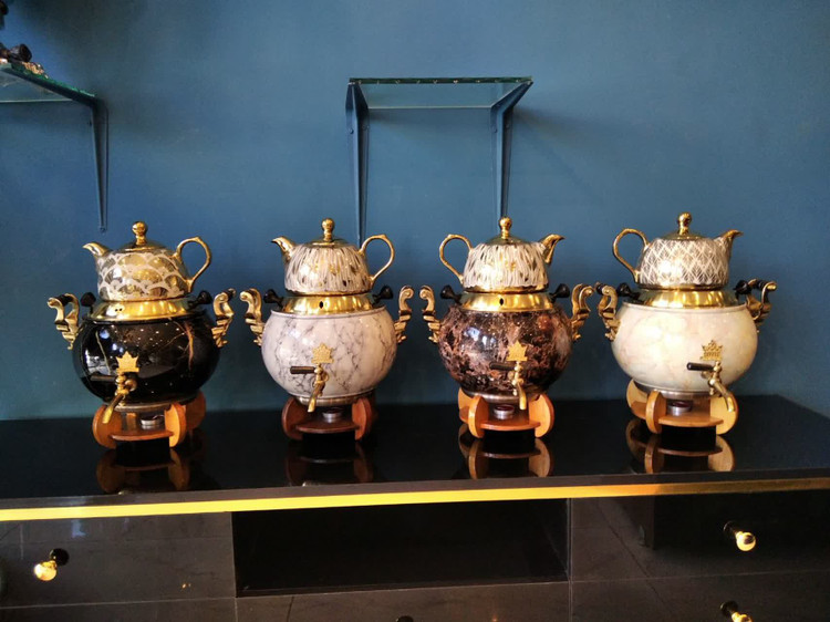 کتری قوری شیردار 6 لیتری سماوری با پایه وارمر دار (حالت گرم نگدارنده با شمع)