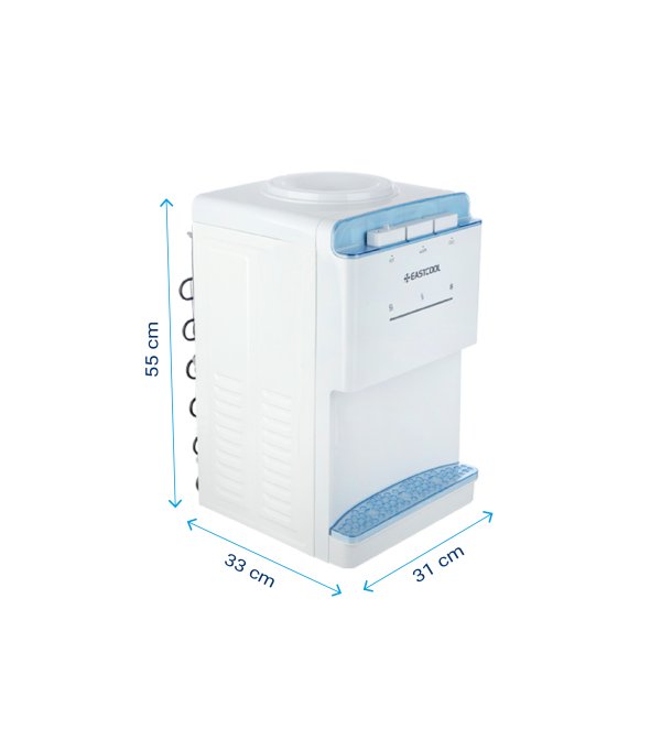 این دستگاه رومیزی به رنگ سفید مناسب مصارف اداری، تجاری و بیمارستانی، خانگی، دارای سه شیر سرد، گرم و ولرم و قفل محافظ آب داغ است.
