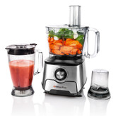 جنس بدنه استیل و تیغه ی استیل ضد زنگ و بدنه ی سیلیکونی ضد خش و تیغه ی سیلیکونی خمیر زن و آسیاب کن با شیشه نشکن و مخلوط کن به همراه دو تیغه ی متفاوت و گجت رنده با پنج تیغه ی متفاوت و کاربردی دارای آب مرکبات گیری