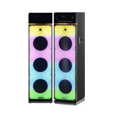 امکانات و قابلیتها نور حرفه ای FLAME با هم کار می کند بلندگو با راندمان بالا با آمپلی فایر داخلی واحد درایور: ساب ووفر 6 × 10 اینچ + توییتر 2 × 3 اینچ پخش کننده صوتی و تصویری MP5 2 ورودی USB (برای پخش موسیقی و شارژ) کارت TF / FM / بلوتوث 2 ورودی میکروفون ورودی های نوری و AUX خروجی تصویری دارای پنل لمسی 8 نقطه ای صدای جادویی (تغییر افکت آهنگ میکروفون) تنظیم عملکردهای کارائوکه میکروفون حرفه ای: Mic.BASS، Mic.TREBLE، Mic.REPEAT، Mic.DELAY، Mic.REVERB عملکرد اولویت میکروفون کنترل اکولایزر عملکرد کارائوکه تنظیم صدای میکروفن با تقویت کننده باس توان خروجی: 100W × 2 RMS حداکثر توان خروجی: 38000W PMPO پاسخ فرکانسی: 40 هرتز تا 20 کیلوهرتز ولتاژ: AC 220V/50Hz دارای میکروفون بی سیم حرفه ای دارای ریموت کنترل کامل