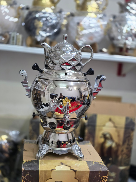 سماور گازی ۶ لیتری با قوری ، رنگ نقره ای ایران شرق