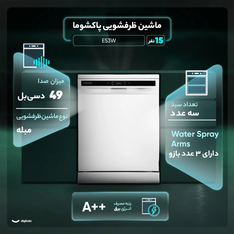 ماشین ظرفشویی 15 نفره پاکشوما مدل E53